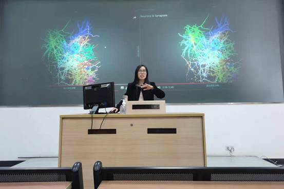 梁老师先是带领同学们回顾了大脑的生理结构,随后介绍了脑电技术在神经精神疾病(比如阿尔茨海默症)、测谎、情绪、社会心理学、阅读障碍方面的应用,使同学们了解到脑电技术不仅仅是停留在实验室里,它也是与我们的生活、工作与学习息息相关的。随后,梁老师向同学们分享了脑电采集数据、显微镜下的神经元和突触三个视频,加深了同学们对相关内容的理解。