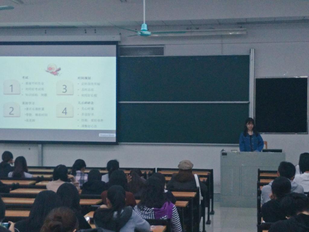 讲座开始前,唐熙淼同学向同学们说明了这次讲座的内容以及目的,也向我们简单地介绍了一下两位优秀的学习榜样,向我们展示了优秀榜样的形象。在同学们热烈的掌声中,戴聪颖学姐走上了讲台。