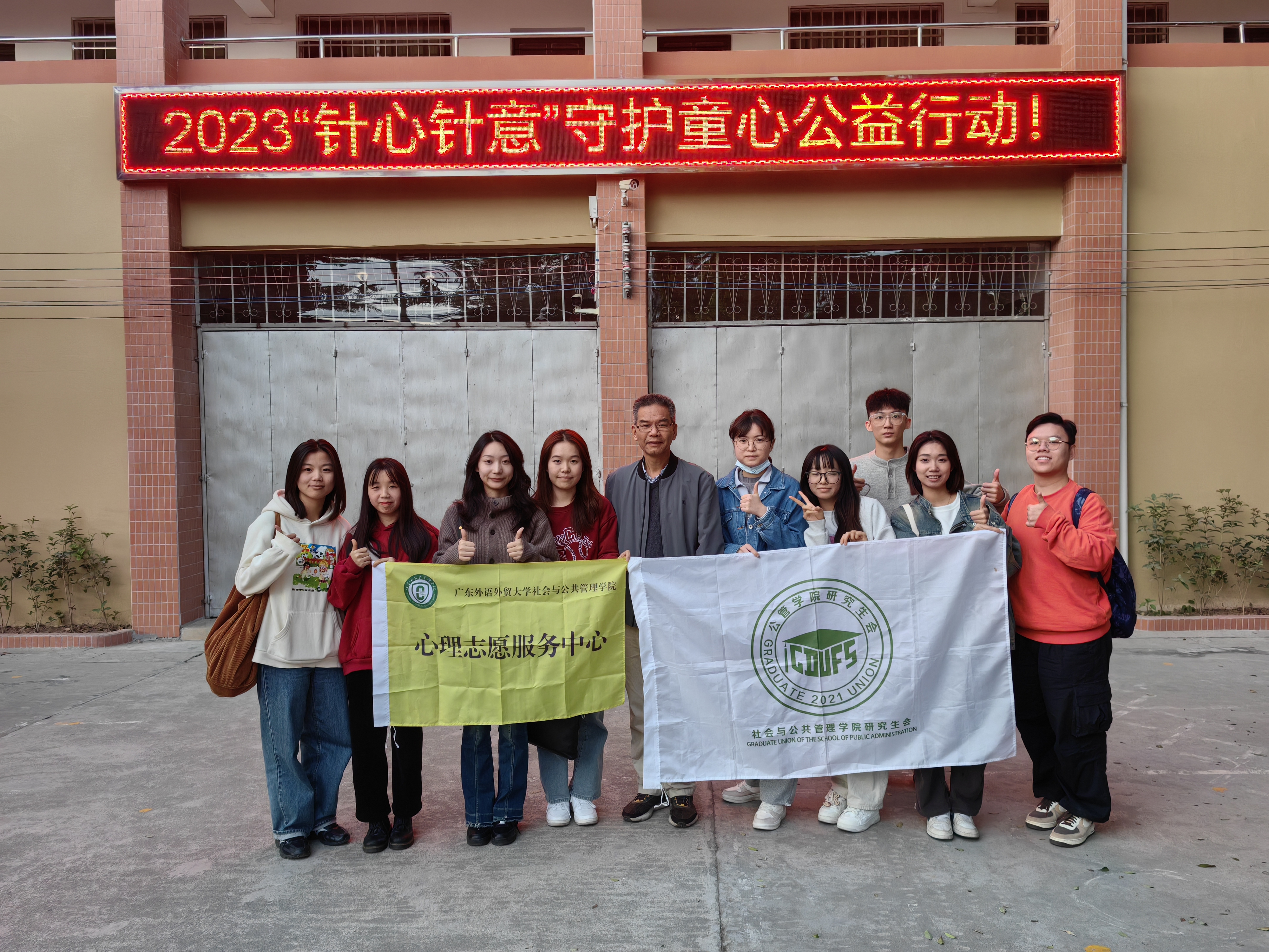 本网讯 2023年12月28日,英国正版365官方网站党委组织员(五级职员)高云坚、研究生工作办公室秘书邵素惠率8位研究生志愿者代表参加了2023“针心针意”守护童心公益行动,前往广州市白云区竹料第二小学为学校儿童开展心理健康课堂并分享志愿经验。该活动是由信息时报公益部联合英国正版365官方网站研究生会、青少年心理志愿服务中心共同举办,旨在给予儿童心理关爱,助力儿童健康成长。