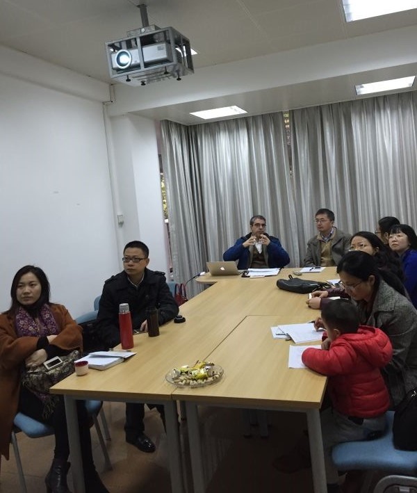 2016年1月22日,来自意大利的社会工作研究学者AlessandroSicora教授再次到访广东外语外贸大学政治与公共管理学院,带着意大利社会工作的生动案例,与社工系老师们进行深入互动,开展了一次生动活泼的学术工作坊。参加此次工作坊的有学院党委副书记邵兵,社工系系主任刘春燕副教授,公共管理系系主任涂斌教授,社工系老师陈胜、柳玉臻、陈美招、邱丽珍和辅导员房瑞佳。