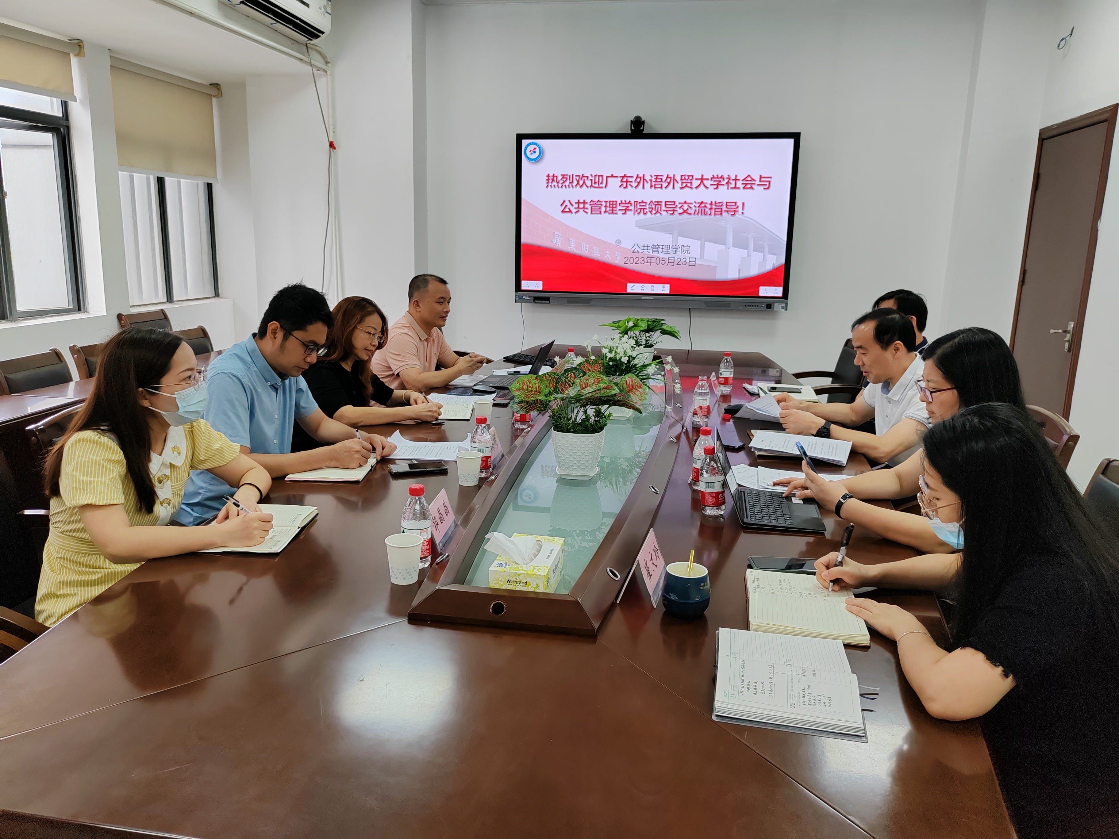 本网讯 5月23日上午,英国上市公司官网365院长涂斌、副院长费久浩、MPA教育中心主任林海彬、研究生工作办公室秘书郭晶晶等一行4人前往广东财经大学公共管理学院调研MPA高质量发展及人才培养与管理事宜,广东财经大学公共管理学院副院长(主持工作)姚军、副院长戴昌桥、MPA教育中心主任刘丁蓉、学科秘书崔文玲出席调研会。