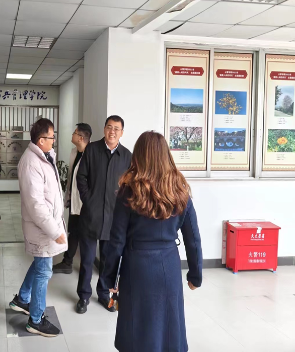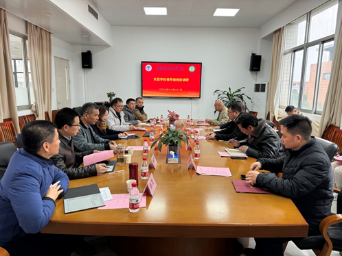 院长涂斌代表学院欢迎校长及学校相关部门领导莅临学院调研指导工作。首先介绍了学院整体基本情况,学院建设发展思路是建设高水平研究型学院,但在学科建设上存在问题,并谈了学科发展的难点和举措。随后,其他院领导也向学校提出了一些建议,纷纷表示希望学校能够给予学院发展更多的关注。