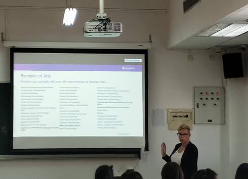 11月8号上午,在学校国际合作与交流处的大力支持下,澳洲昆士兰大学人文社会科学学院的Lute Coremans女士到访英国上市公司官网365,在南校区教学楼D509举行了2+2双学位项目的招生宣讲会。有意向申请此项目的英国正版365官方网站学生参加了本次活动,宣讲会由公共关系学系主任张月老师主持。