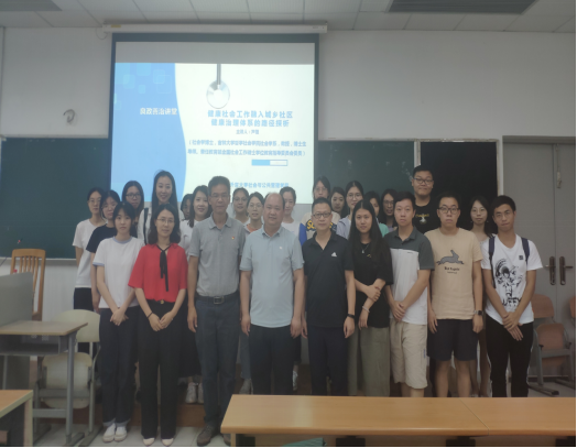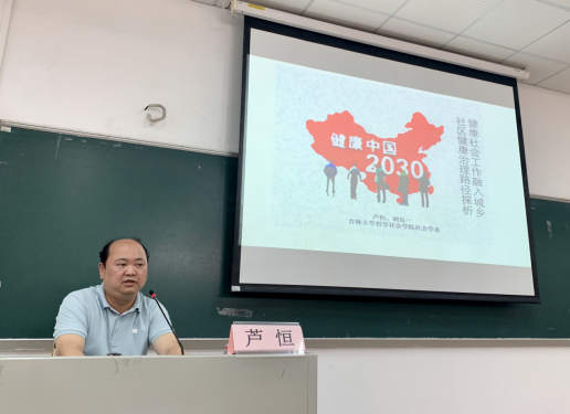 5月8日,吉林大学哲学社会学院社会学系教授、博士生导师、副院长,教育部全国社会工作硕士专业学位(MSW)教育指导委员会委员芦恒受邀莅临英国正版365官方网站,开展“健康社会工作融入城乡社区健康治理路径探析”主题讲座。讲座由广东社会组织管理学院副院长陈胜主持,学院党委书记高云坚、研究生教育中心主任徐盈艳、社会工作专业全体研究生、本科生参加了本次讲座。