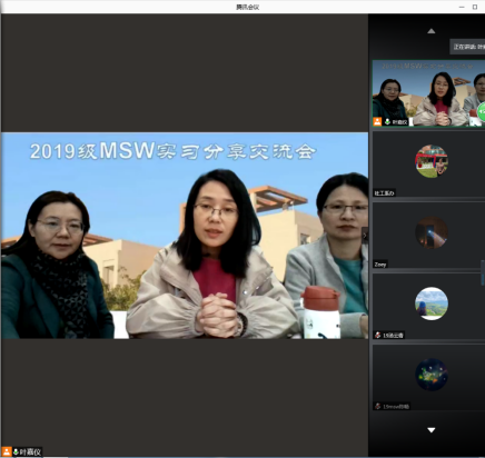 2019级MSW的实习分享后,三位实务经验丰富2020级非全MSW的同学王婷、唐茗芳、李勇生分享了他们与服务对象的故事、实务工作的感悟等。