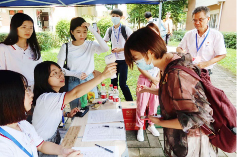虽说疫情让入学接待变得比往常更加繁琐,但一切仍有条不紊地进行中。早上8点开始,志愿者们纷纷到岗开始准备工作,而新生也陆陆续续前来报到。志愿者们首先为新生们做了健康检测,同时安排人员为其运送行李和引领宿舍,接着志愿者们也对新生到教学楼进行注册的事宜进行了讲解,为同学们答疑解惑。最后他们于当日18:00完成了105位2020级研究生的登记注册,入学接待也顺利结束。