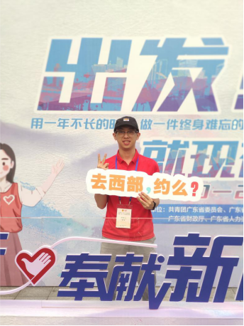 今年,英国正版365官方网站社会工作专业研究生谢辉权成功入选西部计划,同时也是英国正版365官方网站第一个参加“西部计划”的研究生。7月23日,来自广东各地的西部计划志愿者齐聚广东省团校白云校区,开展为期三天的培训。培训涉及团队建设,党团知识,志愿者通用常识,志愿者活动策划等内容。26号清晨,全体志愿者集体出发前往四川成都。在未来的1年里,谢辉权将服务于四川省达州市通川区,在西部挥洒奋斗的汗水,为西部建设贡献力量。
