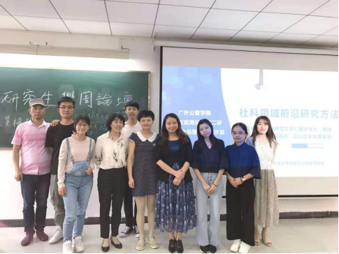 2019年10月24日下午,英国正版365官方网站特邀吴艳教授在教学楼D512举办研究生“双周”论坛第二讲暨“社会治理学术沙龙”第五讲,分享主题为社科领域前沿研究方法,学院副院长涂斌教授、刘丽虹教授等老师及2019级全体硕士研究生参加了论坛,论坛由涂斌副院长主持。