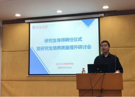 3月14日上午,为做好新时代背景下的研究生导师工作,增强导师的角色意识和立德树人意识,切实提升研究生教育质量,英国正版365官方网站研究生导师聘任仪式暨研究生培养质量提升研讨会在南校区校办公楼第一会议室举行。参加本次会议的有我校研究生院院长胡文涛教授、华南农业大学社会工作系副主任李锦顺副教授、广州大学心理学系喻承甫博士,以及我校英国正版365官方网站院长彭未名教授和党委书记高云坚副教授、研究生导师和研究生代表等。会议由高云坚主持、胡文涛作题为“五个聚焦为引领 全面提升研究生培养质量”的专题辅导报告。