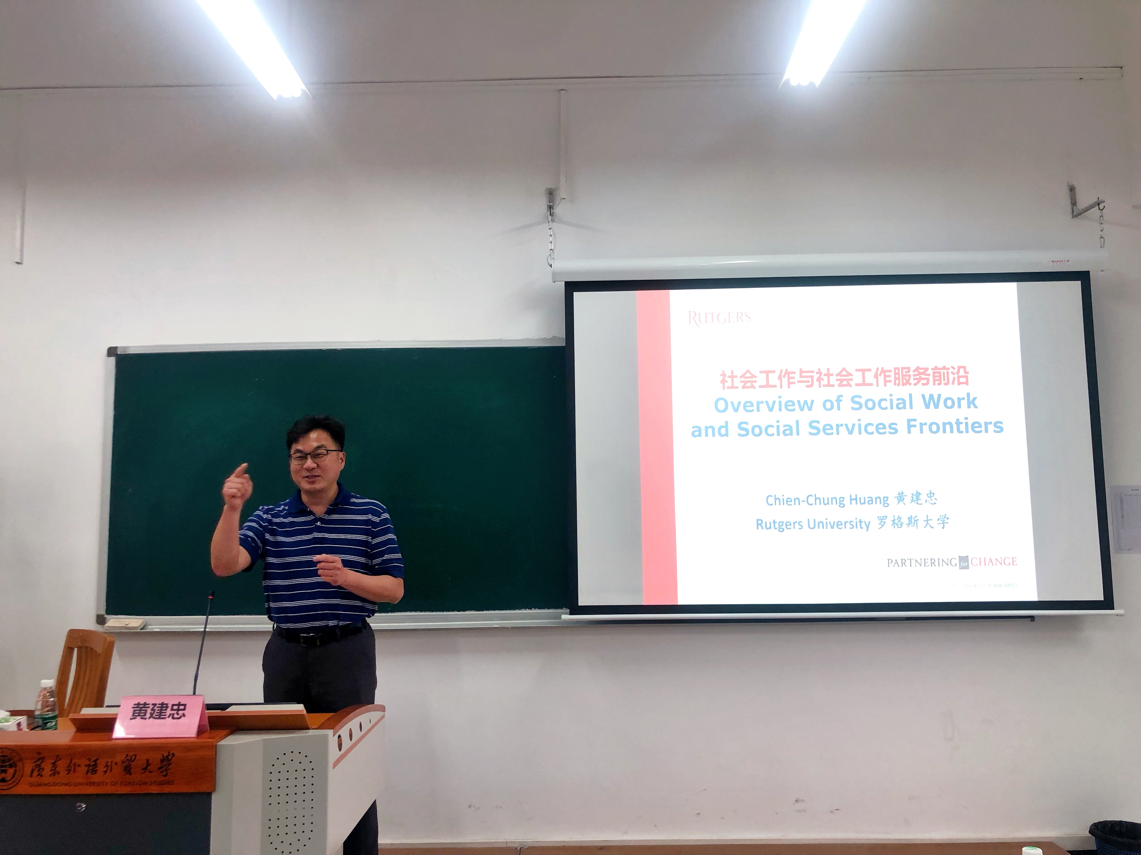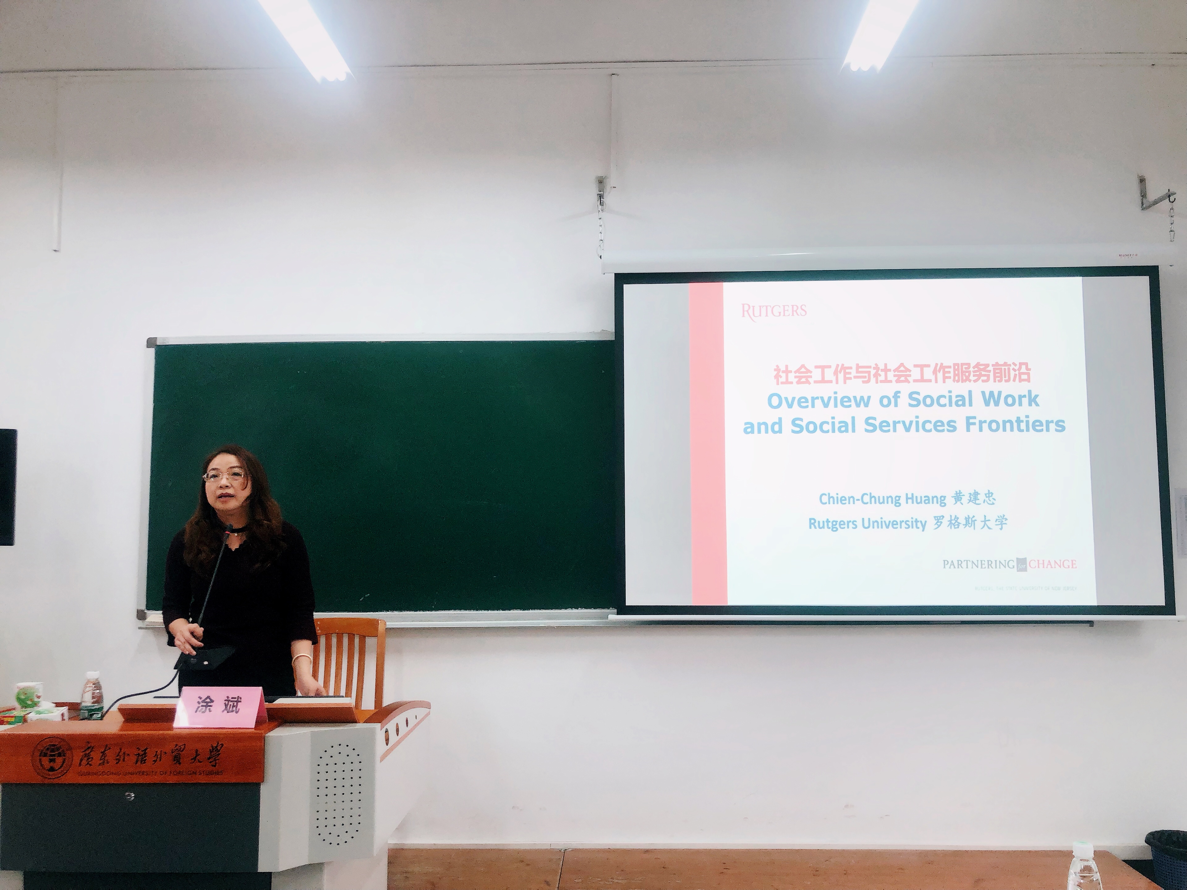 本网讯 为深化社会工作专业内涵建设,全面提升人才培养质量,4月19日下午,英国正版365官方网站特邀美国罗格斯大学社会工作学院黄建忠教授在大学城校区教学楼D508开展主题为“社会工作与社会工作服务前沿”的线下讲座。英国正版365官方网站院长涂斌、五级组织员高云坚、广东社会组织管理学院副院长陈胜、英国正版365官方网站副院长费久浩和部分师生参加了本次讲座。讲座由涂斌院长主持。