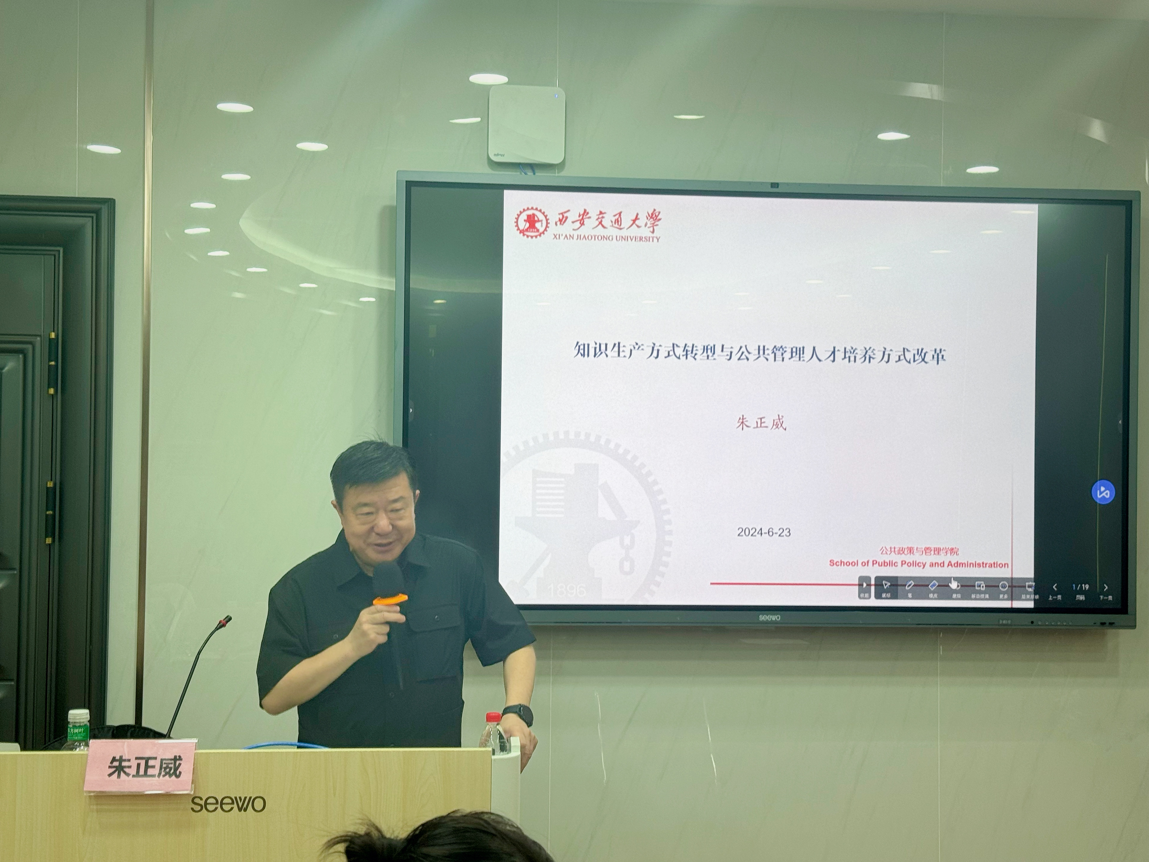 在讨论交流环节,在场师生就新形态教材,学科交叉潮流,数字化、智能化与治理体系和学科建设等问题与朱正威教授展开热烈讨论。涂斌院长在总结中表示,朱教授凭其深厚的专业知识和丰富的实践经验,为在场师生带来了一场深入浅出、内容丰富的讲座;学院将着眼公共管理学术前沿,以全面提高公共管理人才培养能力为重点不断深化改革,为公共管理学科教育水平提升贡献力量。