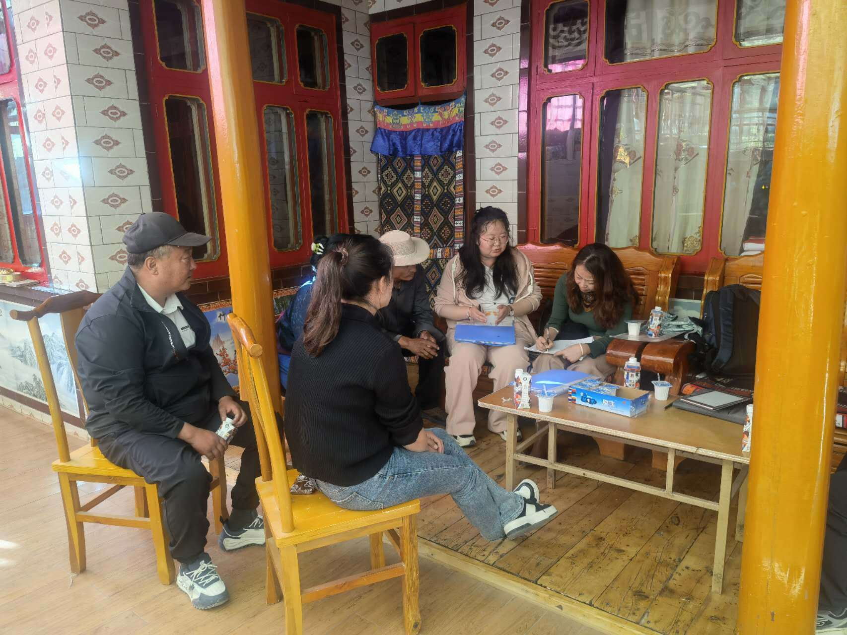 9月10日下午,涂斌、黄思明等前往夏河县牙利吉办事处牙利吉村,走访甘南州第十七届人大代表、第六次甘南州工商联副主席、第五届合作市工商联主席(会长)、甘南拉卜楞仿古建筑工程有限责任公司董事长贡保杰,详细了解当地村民的生活状况和经济来源,调研村民对当地的乡村治理、基础设施建设、公共服务水平、教育资源分配等方面变化的看法,以及对未来发展的期望等内容,为课题研究获取宝贵的一手资料。