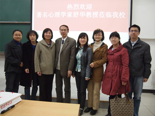 12月16日下午,著名心理学家北京师范大学舒华教授在我校教学楼F208作了题为《人类语言认知的探索》的讲座,政管学院心理学系老师和同学一同聆听学习。