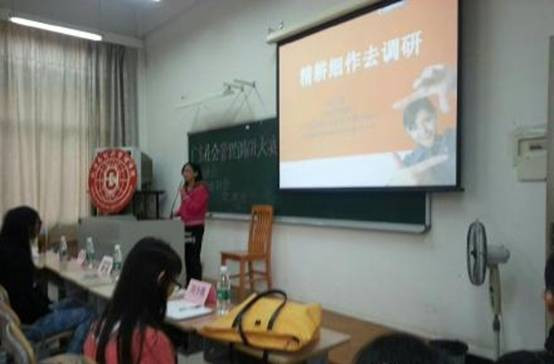 11月29日下午,火热报名中的广东社会管理调研大赛在广东外语外贸大学南校区教学楼C101课室举办了宣讲会、培训会和交流会。出席大会的嘉宾有广东外语外贸大学政治与公共管理学院党委副书记邵兵,学院团委书记陈三峰,社会调查方法授课教师陈胜,以及第五届调研大赛的亚军队伍队长,现任广外社会管理协会副社长的刘少燕,和第六届大赛的冠军队伍队长曾泽亮。