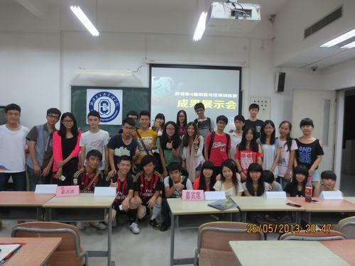 2013年5月26日19时,,“创作先‘疯’”——政管第四届创意与设计培训营成果展在教学楼A401正式举行。本次成果展特意请来了学生会主席李欣昕,学生会副主席卢秀云、陈金城以及“Quanta”的讲师团队担任嘉宾。
