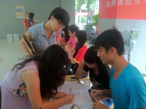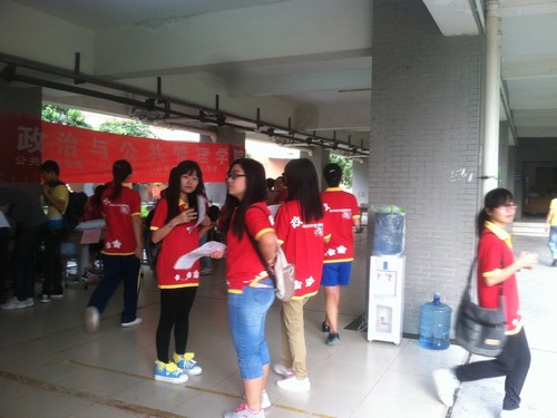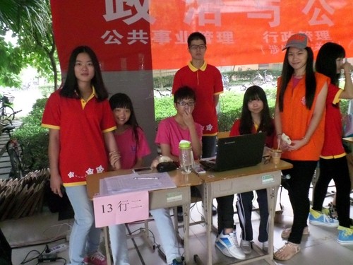 9月8日,政管学院迎来了2013届的新生。志愿者们全体出动,各班也派出了代表在南苑8栋架空层迎接闪亮的小星星。在炎炎烈日中,志愿者们以饱满的热情迎接新生的到来!下面,就让我们一起欣赏各班风采照。