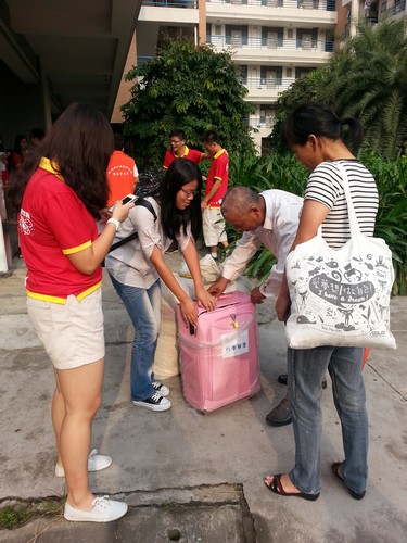志愿者为小星星搬运行李,不辞辛劳,一趟一趟的跑七楼,辛苦了,可爱的志愿者们!