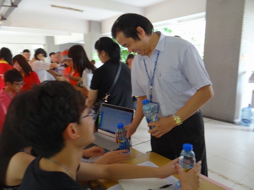 彭未名院长亲自为报到处的工作人员送上饮料并带来慰问!