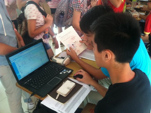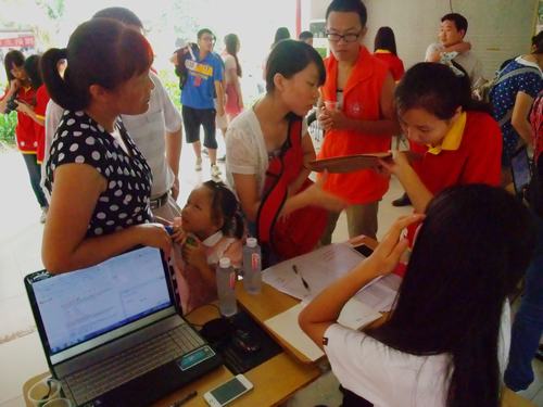 小星星终于“拖家带口”地出现了!志愿者和助助班正在为新生登记资料。大家辛苦了!