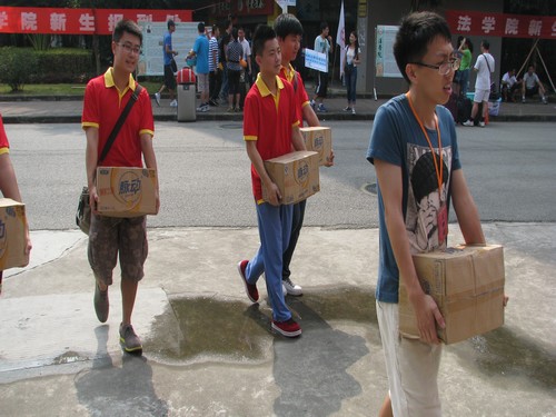 拿好各种材料,今天开始,你就是正式大一学生了哦!