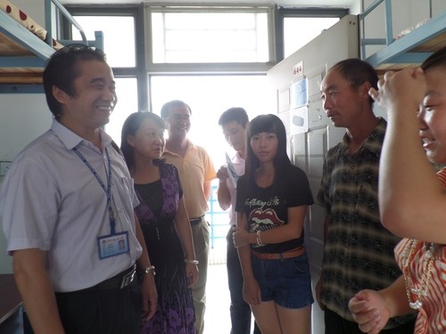 彭院长、范书记一行来到新生宿舍慰问,与学生家长亲切交谈。