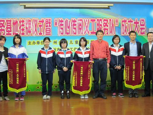 2012年11月18日上午10点,政管学院师生在广州少年儿童图书馆海珠馆报告厅参加了义工联共建单位挂牌仪式暨“传心传阅义工服务队”成立仪式。