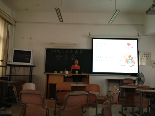 分享会是由社工系系主任刘春燕老师的致辞拉开序幕,春燕老师首先对09级香港之行表示了肯定和支持,能够借鉴香港先进的社工经验开拓视野,并希望香港见习能够成为社会工作专业的固定传统,代代传承下去。