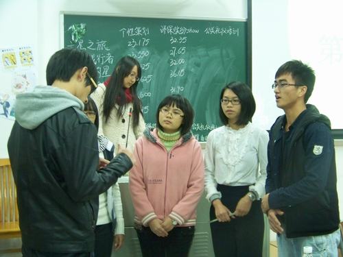 这次礼仪展示的评委不仅有到场的嘉宾,还有参加活动的各队队长。各组主要采取现场场景模拟、示范、纠错的形式向观众传达礼仪知识,精彩的表演显示出他们充分的准备与才干。其中第四组展示的是中餐礼仪,他们以场景剧的形式充分表现了在中餐就餐时失态的可怕,从而传达了注意中餐礼仪的需要。他们还以培训的形式解答了中餐就餐中的礼仪规范。第六组以现场模拟则以对照组的形式展示了西餐礼仪的风采。