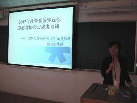 为了动员学院志愿者,更好地提高少年儿童的英语学习水平,3月8日下午两点半,由政管学院实践部负责的图书馆英语角培训会在F209完满举行。培训会向志愿者展示了英语角现场的环境和提供了丰富多样的活动方案。