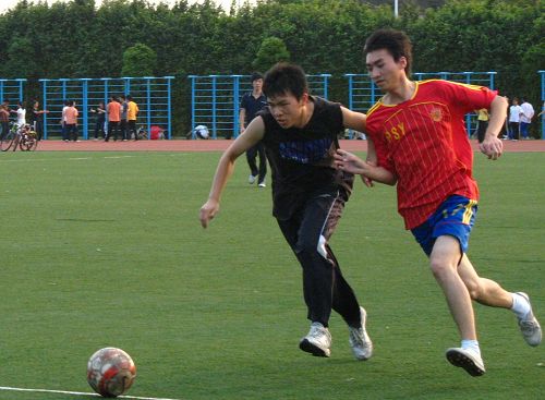 5月11日下午5:30分,政管杯足球赛06应用心理学对阵08社会工作的比赛在人工草场开战。06应心首先夺得控球权,他们抓住机会积极进攻,仅开场几分钟就两次威胁对手的球门,不过都被08社工巧妙地化解。