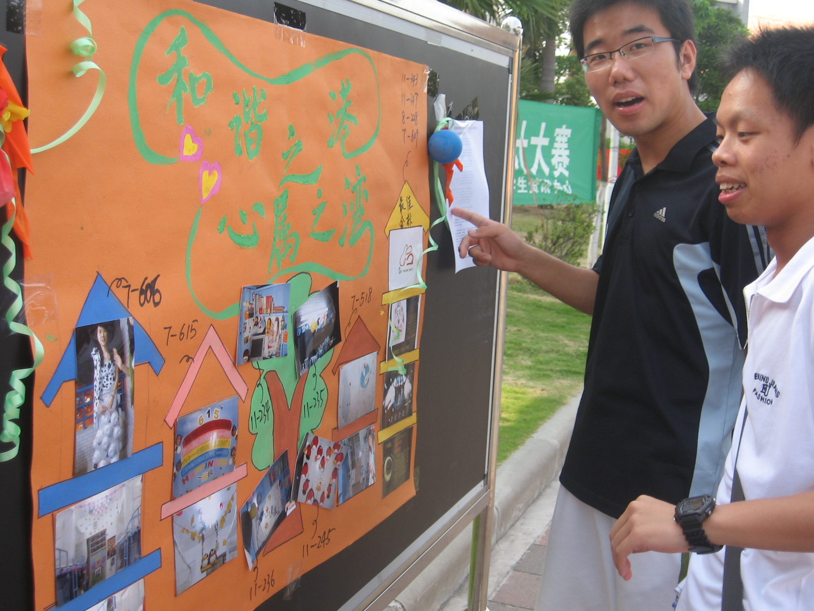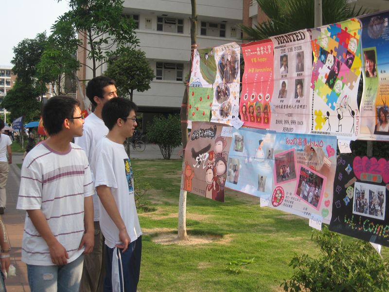 5月15日,政管学院宿舍形象大赛成果在南校区的校道上展示。同学们的热情就如这天的太阳高照一样火红,不同学院的同学们均围在作品前细细欣赏。可以看到政管学院大一、大二的一些宿舍的优秀作品在其中展出,内容包括海报、舍标和宿舍环境布置。还有几位政管的同学手持投票纸积极地呼吁经过的学生们为心仪的宿舍投票。