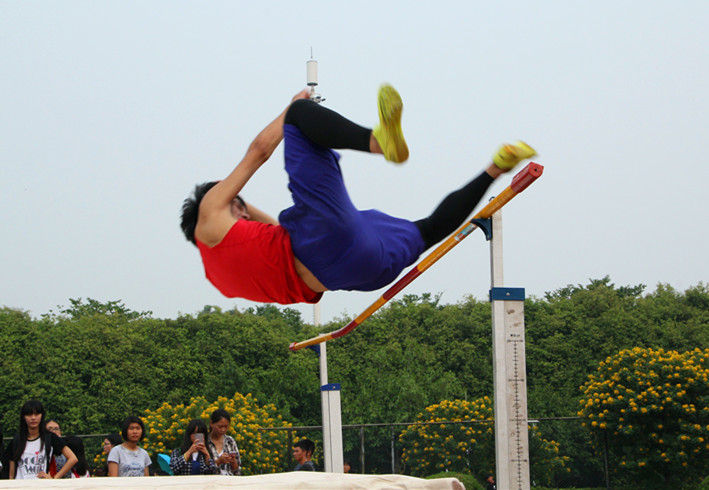 而田赛方面也同样精彩。跳高比赛开始,安静的氛围中弥漫着紧张的气息。很快到了最后一跳,所有人都屏息注视着13届心理班的陈梓鉴同学,突然他发力向前冲去,起跳,成功越过!现场掌声雷动,他也成功获得了男子跳高冠军。另一边的标枪比赛也热烈进行着。虽然许多同学都未曾扔过标枪,可同学们依然积极参与,相互学习,为紧张的比赛增添了几分欢乐的气息。最终标枪冠军由13届行管二班的文富维同学与13届行管一班的谷明杰同学获得。铅球是全场运动会最后一个项目,但同学们热情依旧。在一番激烈的比拼后,13届行管二班的魏志峰同学和12届心理班的何倩宜同学勇夺冠军,为班级增添一份荣耀。