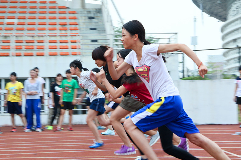 径赛方面,首先进行的是男子一百米决赛,只听观众席上爆发出一阵又一阵热烈的欢呼声,随着裁判员的一声令下,选手们冲出起跑线,奔向终点。再将镜头转回,女子一百米也开始了!谁说女子不如男,今日政管女子的表现绝不逊于任何男生!最终,14届行管一班的潘卓云同学,凭借14.9秒的好成绩,勇夺女子100米的冠军。随着时间的推移,各项长跑比赛也相继热火朝天地开展。800米比赛的竞争十分激烈,但参赛的同学们毫不畏惧,奋勇拼搏,凭着自己坚定的意志力跑完了全程。14届行管一班的周子靖同学以3分08秒的好成绩,率先冲线,获得了女子800米的冠军。最牵动人心的是1500米决赛,两侧的啦啦队不断地为场上的参赛的同学们加油助威,鼓励着运动健儿们努力冲向终点。男子1500米的冠军最终由13届心理班的钟健鹏同学获得。所有运动员的出色表现都给人留下了深刻印象。