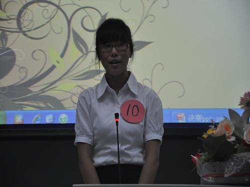 在重温过初赛的精彩片段之后,比赛进入第一环节——主题演讲,选手就“大学,有我型”依次进行演讲。在这一过程中,每位选手都展示出了自己独特的风姿,2号选手杨玲,一个北方女孩,从爱开始,讲诉了自己参加爱心包裹志愿者劝募的活动。3号选手云东源则以乔布斯的故事入题,用饱含热情的的话语道出“人的每一选择都在书写自己的历史。把握现在,在原则中明确自己的目标,找到属于自己的style,才能引领未来”,紧扣主题。他们自信从容的表现给观众留下深刻的印象。