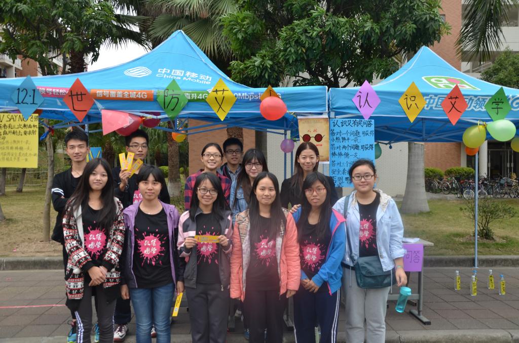 2014年12月1日是第27个世界艾滋病日,为了向同学们普及与艾滋病有关的知识,唤醒同学们对艾滋病患者的关注,1日上午11点30分到13点,政管团学的干事们冒着寒风在校道摆摊,开展热火朝天的预防艾滋病宣传活动。
