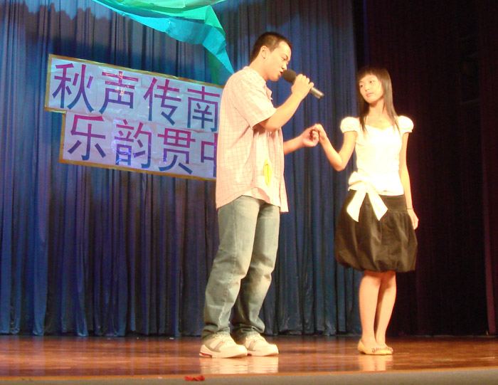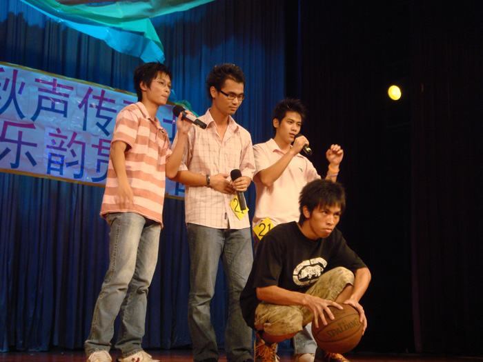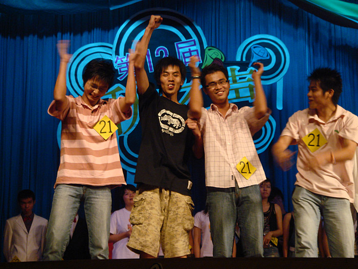 英国上市公司官网365选手在比赛中均表现出色,第一个出场的是张晓刚,他表现得镇定自如,自信十足,还一边演唱,一边表演了一个爱情短剧,并赢来一片欢呼声。之后,英国上市公司官网365活力四射的男子三人组演唱了《奔跑》,经过学院迎新晚会的“预演”后,他们显得更加默契和自信,并带动了全场的气氛。其中还插入了05级一位同学的精彩花式篮球表演,爽郎轻快的歌声和雷鸣般的掌声和谐结合把比赛推上了高潮。穿着独具中国韵味的红衣女孩姚研随后表演,她以熟练的民族唱腔为我们高歌了《好运来》,显出大器之才的风范,让全场洋溢着喜庆洋洋的气氛。