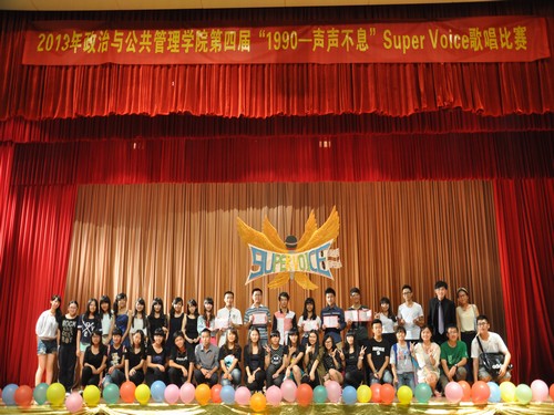 2013年10月7日晚上7点,政管学院第四届Super Voice决赛在学生活动中心多功能厅举行。此次决赛由林岁轩和廖思琪同学主持,评审团由来自星海音乐学院的杨超、艺术学院的周鑫和吴雨晨组成,同时团委书记陈三峰老师更是到现场当嘉宾坐镇。