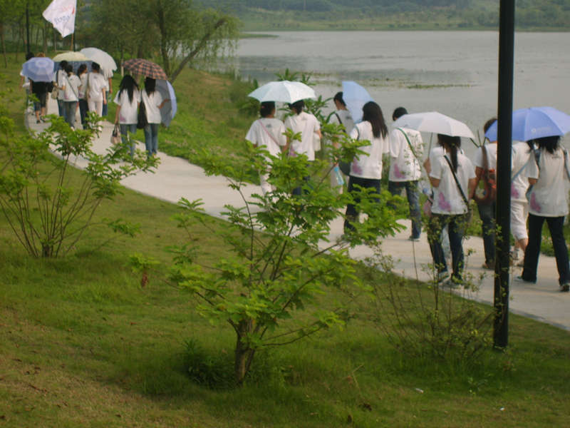 下午3:15分,两班同学集合出发。为了锻炼大家的意志,同时又尽可能地扩大行动范围,大家在05、06团支部的带领下,按事先制定好的路线,向着“遥远的”终点--大学城博物馆――徒步出发。沿途经过了中心湖、广工等地方。一路上,大家努力寻找着垃圾,一发现则马上“没收”,还一度出现了竞赛的场面,现场气氛十分活跃。看着周围优美的自然环境,大家都为之欣然。同时,师兄弟姐妹们热切交流,欢声不断。