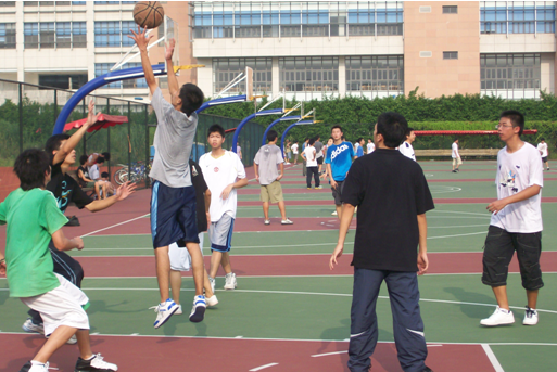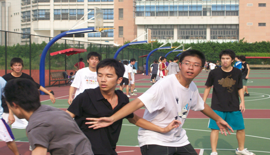 9月7日下午4点钟,06级行政管理1班和07级行政管理1班的篮球友谊赛于南校区篮球场上拉开了序幕。本次比赛是06级行政管理1班为了迎接师弟师妹的到来,特地为他们准备的第一份礼物。尽管烈日当空,但同学们的热情与激情却没有因此而减退,场上篮球队员们的巧妙配合,不时赢得场下啦啦队的阵阵欢呼声。