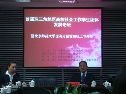 2011年3月12日,“首届珠三角地区高校社会工作学生团体发展论坛暨北师大珠海分校首届社工节开幕式”于北师大珠海分校隆重举行。本次论坛的主办方为珠海市社会工作促进局,由珠海市社会工作协会联合主办,珠海市京师社会工作中心承办,北师大珠海分校社工协会协办。与会的有广东外语外贸大学、华南农业大学、深圳大学、澳门理工学院、北师大珠海分校、广东商学院、广东工业大学、广州大学、珠海城市职业技术学校的社会工作协会代表。会议旨在讨论珠三角地区高校社会工作团体发展的机遇与挑战。