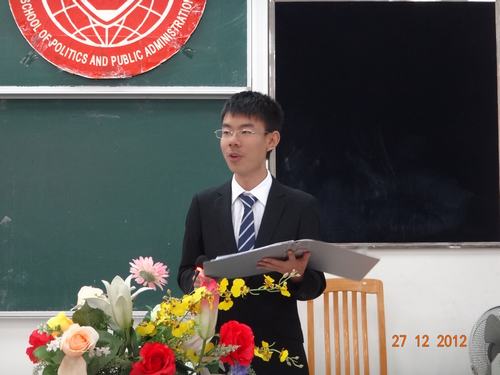 12月27日下午2:30,政治与公共管理学院团委学生会2012-2013学年第一学期总结暨表彰大会在教学楼F215顺利召开。团委书记陈三峰老师应邀出席了本次会议。此外,团学干部和干事集体出席总结大会。本次大会由学生会主席李欣昕主持。