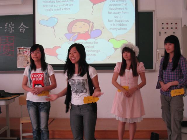 3月29日下午2点15分,政管学院在教学楼A303举行了综合英语技能大赛初赛,出席本次大赛的评委有来自政管学院09行二的罗丹,09社工的陈文亮,10行二的曾耀颐,还有英教学院的陈倩倩。