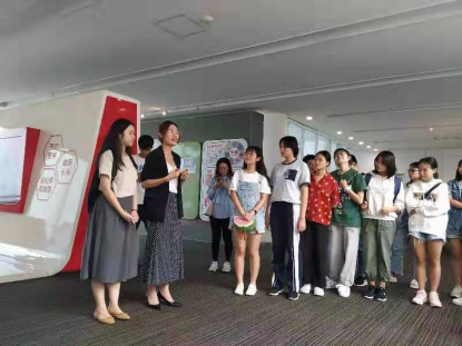 首先励丰公司的职员们向同学们展示的是励丰与黄埔区合作的公共文化服务——以独特灯光效果的电子水墨屏为特色的图书咖啡厅,接着参观了励丰公司的文化+科技的企业客户端体验区。随后职员给同学们介绍励丰的发展历史,励丰以灯光、音响设备起步,在08年奥运会上获得负责幕后工作的宝贵机会,从此以后开始多元发展,才有了今天的励丰。此外她还就公司以人工智能为基础的文化旅游创新项目进行介绍,回答了同学们关于所学专业与求职就业方面的相关问题。