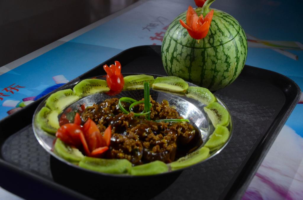 参赛的队伍各自拿出了自己最拿手的菜色,菜色各不相同。中式的炒菜、西式肉扒、汤、糖水等等各种特色菜式在同学们的巧手之下都让人垂涎欲滴。而冠军队伍“为食小当家”队则做了一道“小鸭很忙”——用当季的鲜芒酿梅子鸭胸肉,鲜甜软糯的芒果夹着煮到绵密细腻的鸭胸肉,入口之后还有淡淡的梅子的酸甜,清新爽口,不油不腻,当之无愧地成为了评委们的首选。