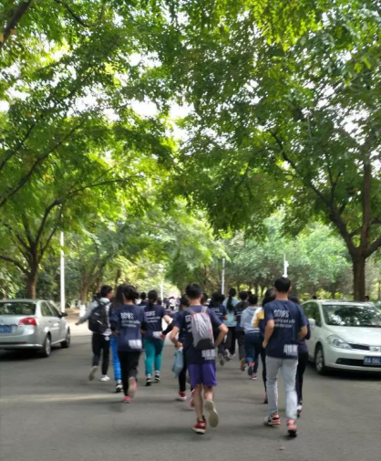 夕阳下,马路上,女孩子们的秀发随风扬起,男孩子们步履如风般矫健。公管1603的同学们一步一步地追随着阳光,挥汗如雨,身边有着小伙伴的陪伴,漫长的路程似乎变得很短。