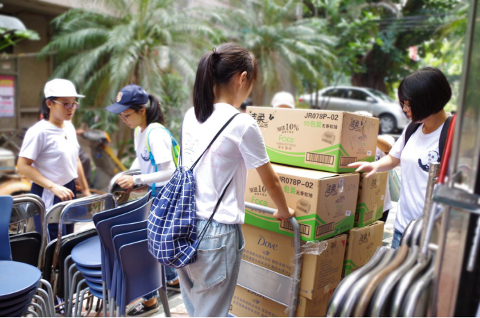 到了家综,我们很好地实践了广外的精神——女生当男生用,男生当畜牲用。当人们有一个共同的目标的时候,心往一处想,力往一处使,人与人之间的隔阂也在这过程中冰消瓦解。我们一起搬桌子,一起扛椅子,一起布置,一起流汗……相见到相识,相识到相知,一切是自然的,可我相信,缘分早已把我们捆绑,命运早已做好安排。