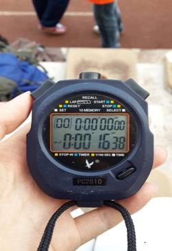 我报名成为了计时员。下午2点多拿着秒表坐在计时塔上。计时塔似乎10年未用,上面布满灰尘。我们就垫着张纸坐了下来。