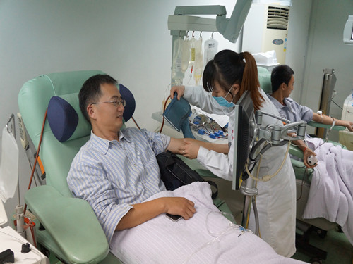 本次活动是捐献人体的成分血,与捐献全血不同的是,成分献血是在捐献者献血的同时,让血液经过严格消毒的、一次性使用的密闭管道,通过血液分离机分离采集出所需要的某一种成分,然后再将其它血液成分回输给捐献者。从在场的医生口中得知,此次献血主要采集人体血液中的血小板。其实无论是捐献全血抑或成分血,在场的师生都是一种以救死扶伤为目的的志愿奉献行为。更值得一提的是,从验血到止血期间,每个环节医务人员都做到认真细致,无不体现出他们对生命的高度责任感。