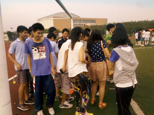第一个项目是传送带游戏,经过前晚的训练,大家都明确了自己的任务。在正式比赛的时候,同学们齐心协力,很快地完成了运送任务。虽然中间有一点小挫折,不过最终都被克服了。接着是水杯接吻游戏,同学们充分发挥了良好的团队协作能力,成功将量水杯的水装满了。第三个游戏是夹气球游戏,考验两位同学的默契程度,也很好地检验了速度,同学们完成地相当不错。最后是十人十一足游戏,同学们有技巧地用布条绑住了双腿,进而使腿部的受力均匀,不至于太过疼痛,为比赛节省了时间。