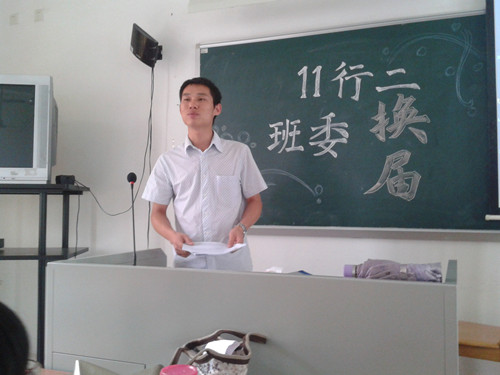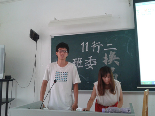 2012年5月28号15点30分,11行二在教学楼G305举行了班委换届活动,此外,班委们还邀请了辅导员陈三峰老师,和10行二的师兄师姐们来旁听,以证换届活动的公正与公平。